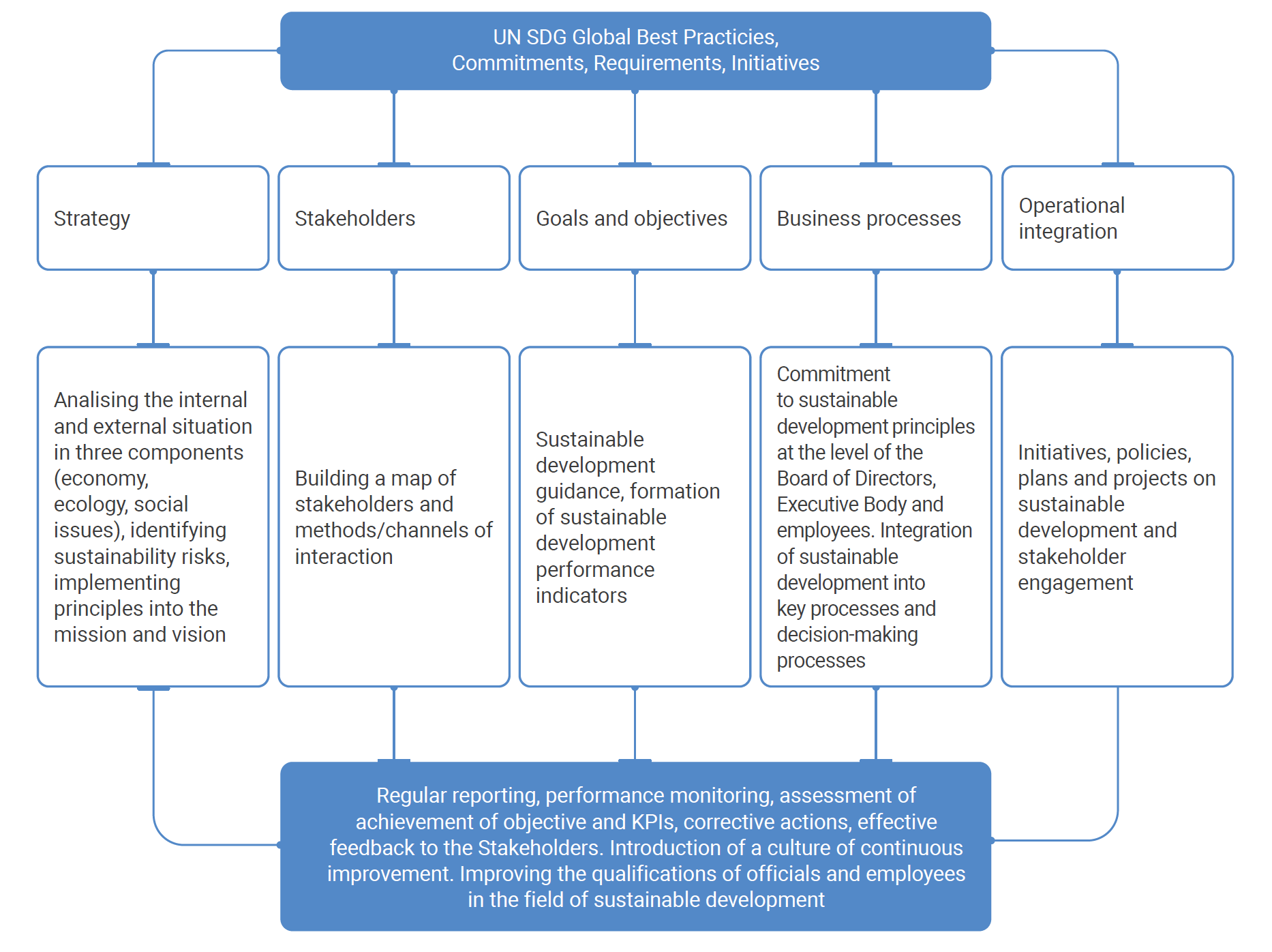 The Board of Directors is responsible for strategic guidance and control over the implementation of sustainable development principles. The Board of Directors approves relevant policies, approves key performance indicators and monitors the fulfilment of the Company's commitments.