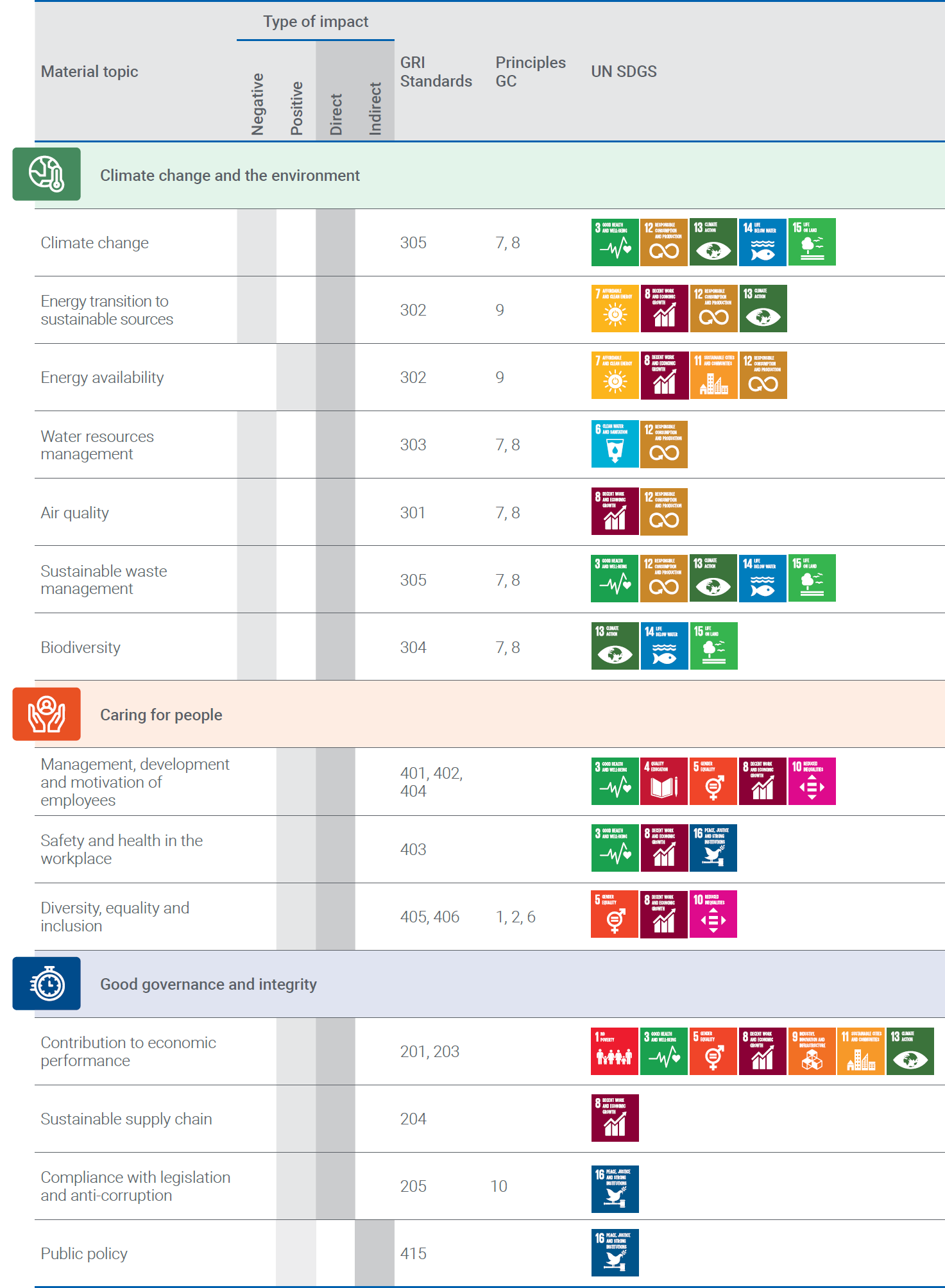 The most material topics were selected based on the principle of double materiality: we considered the topics that are the most material in terms of their impact on the Company's financial results and the topics that are the most material to society in terms of our impacts.