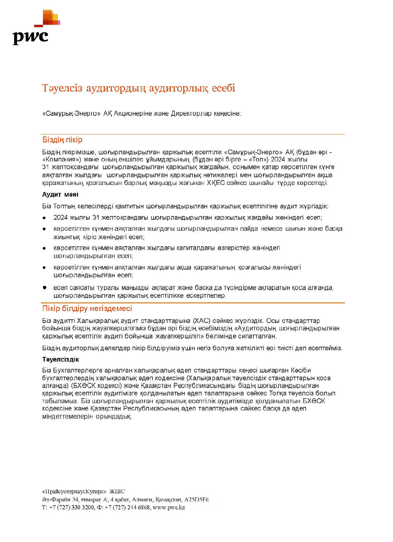 2024 ж. 31 желтоқсандағы жағдай бойынша | ||||||