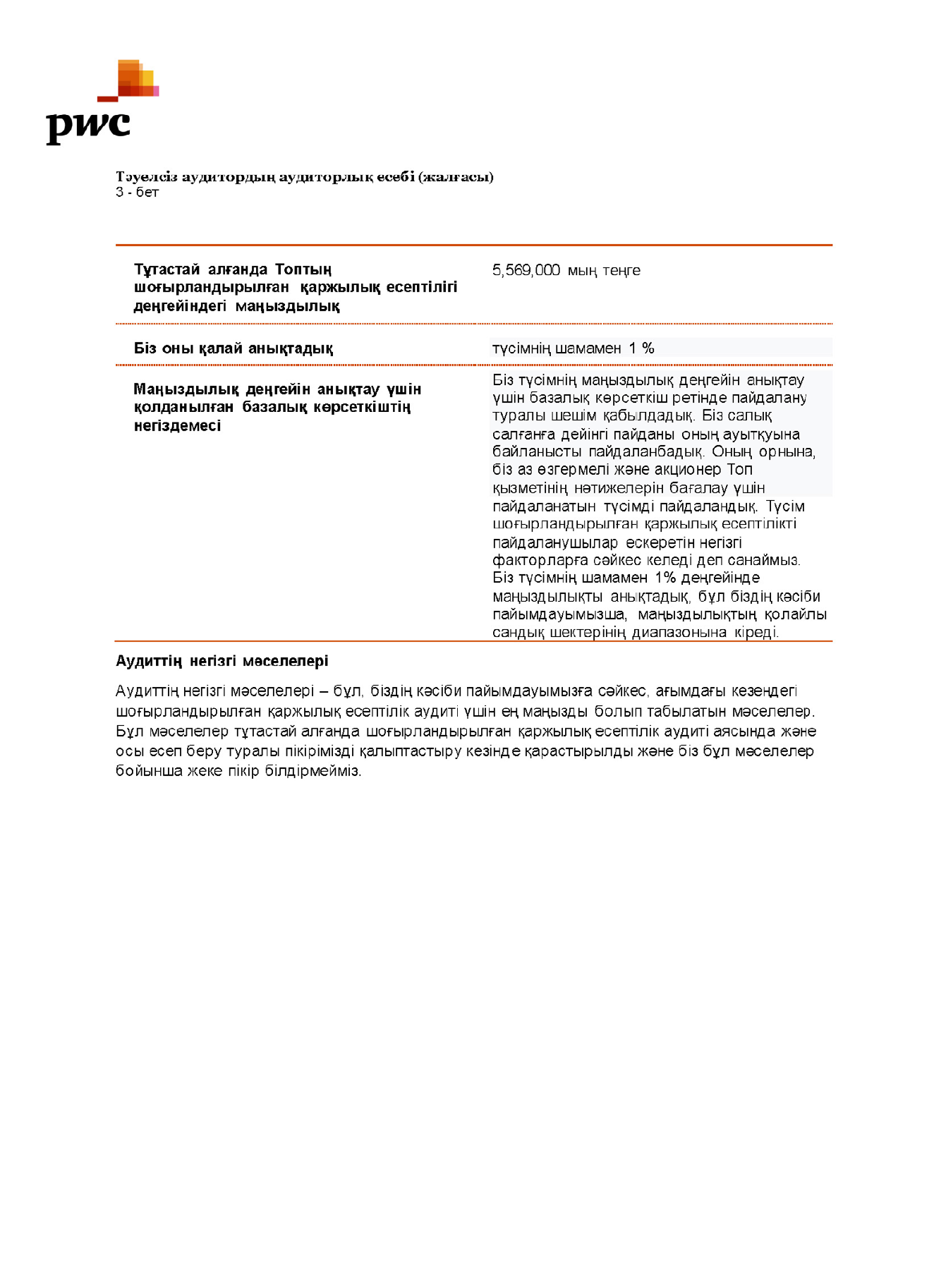 Топ валюталық тәуекелге ие және теңге бағамының құбылмалылығының теріс өзгерістеріне ұшырайды, өйткені шетел валютасындағы қаржылық міндеттемелер 2024 жылғы 31 желтоқсандағы жағдай бойынша барлық міндеттемелердің шамамен 5% - құрайды.