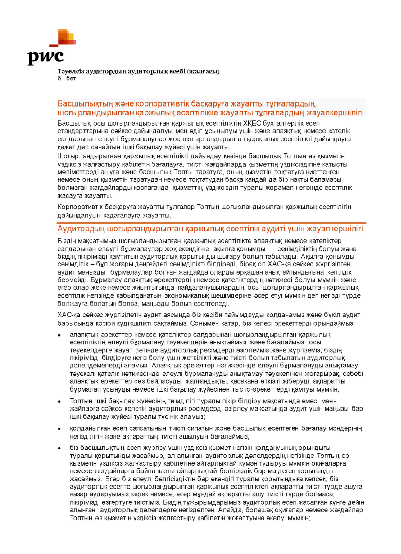 ХҚЕС бухгалтерлік есеп стандарттары Шоғырландырылған қаржылық есептілік және Тәуелсіз аудитордың аудиторлық есебі
