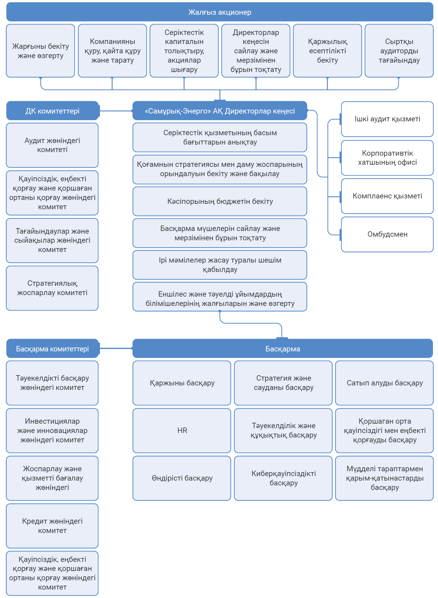 Корпоративтік басқару кодексімен мына сайтта танысуға болады: https://www.samruk-energy.kz/images/Corporate_documents/KKU_2024_kz.pdf