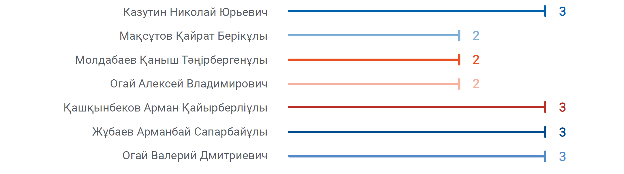 • Жұбаев Арманбай Сапарбайұлы – Тәуелсіз директор, Аудит жөніндегі комитеттің төрағасы, Тағайындаулар мен сыйақылар жөніндегі комитеттің, Стратегиялық жоспарлау комитетінің мүшесі.