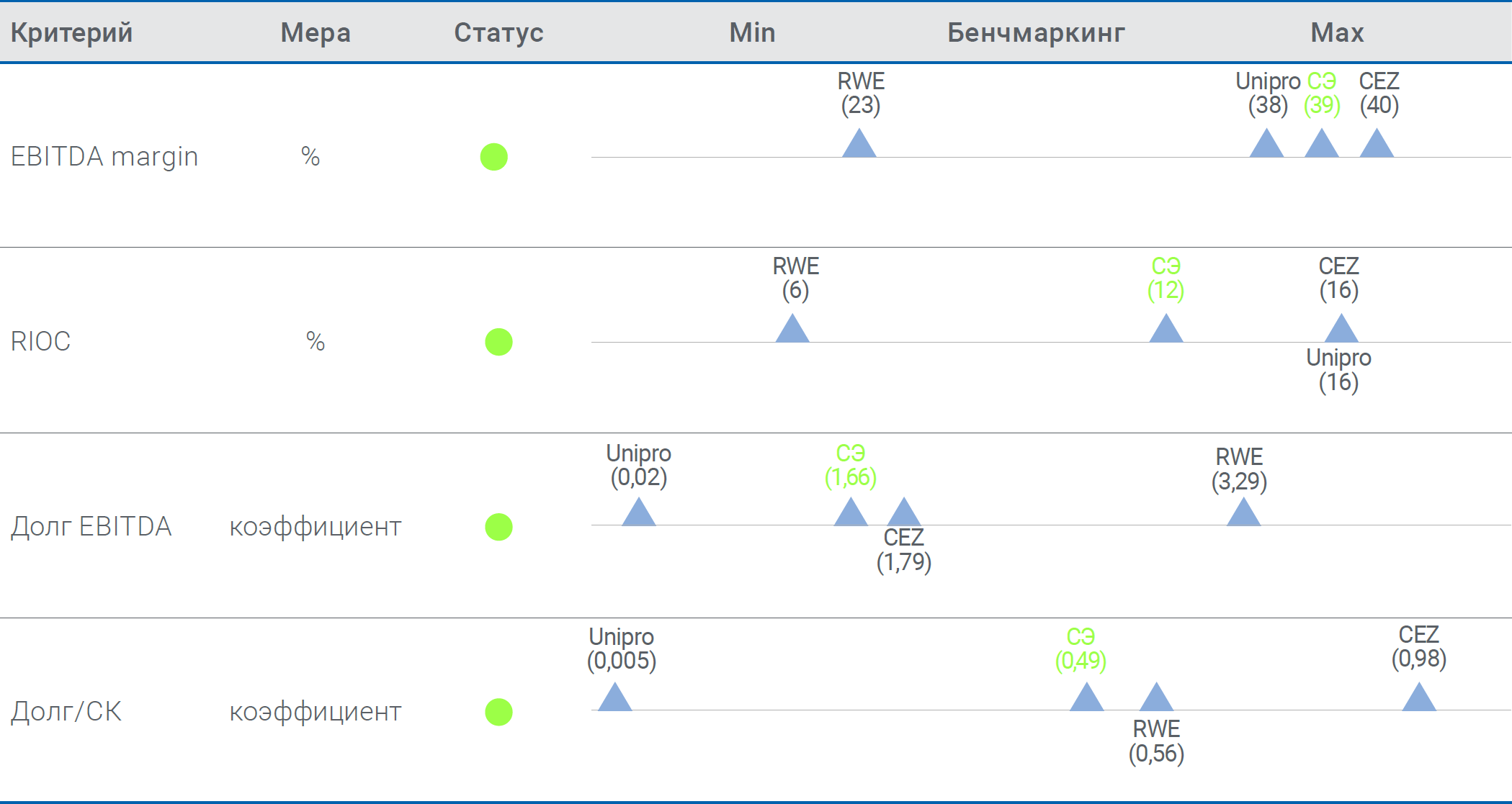 По показателю ROIC (рентабельность долгосрочного вложенного капитала) АО «Самрук-Энерго» находится ниже CEZ Group и Unipro, при этом на 6% выше компании RWE.