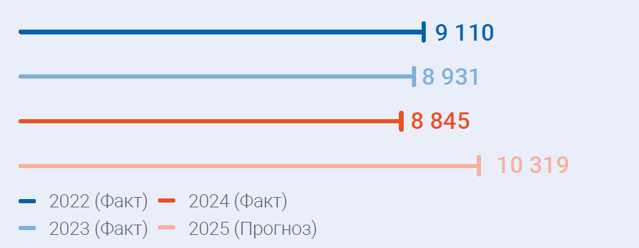 Показатель | 2022 факт | 2023 факт | 2024 факт | 2025 прогноз |